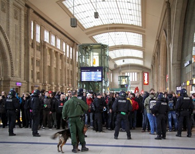 Foto: Blockade des Leipzig Hauptbahnhofs, von Mikael Zellmann, c