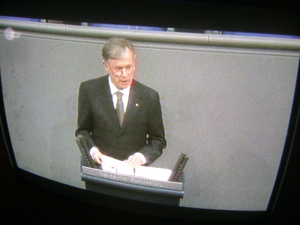 Die größten Feinde der Erinnerung sind die Verdrängung und die Lüge. Wir dürfen nicht zulassen, dass Holocaust-Leugner und Extremisten aller Art in unserem Land Beifall oder auch nur Verständnis finden. Wer gegen Juden und andere Minderheiten hetzt, wer Anderen die Menschenwürde abspricht, hat nichts aus unserer Geschichte gelernt. Treten wir solchen Leuten entschieden entgegen. Gestatten wir es ihnen nicht, Deutschlands Namen zu beflecken.