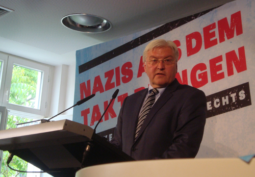 Frabk-walter Steinmeier vor Schrift Nazis aus dem Takt bringen