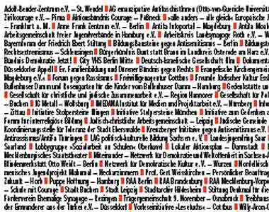 Ausschnitt aus dem Plakat der Aktionswochen gegen Antisemitismus, auf dem alle beteiligten Initiativen aufgelistet sind