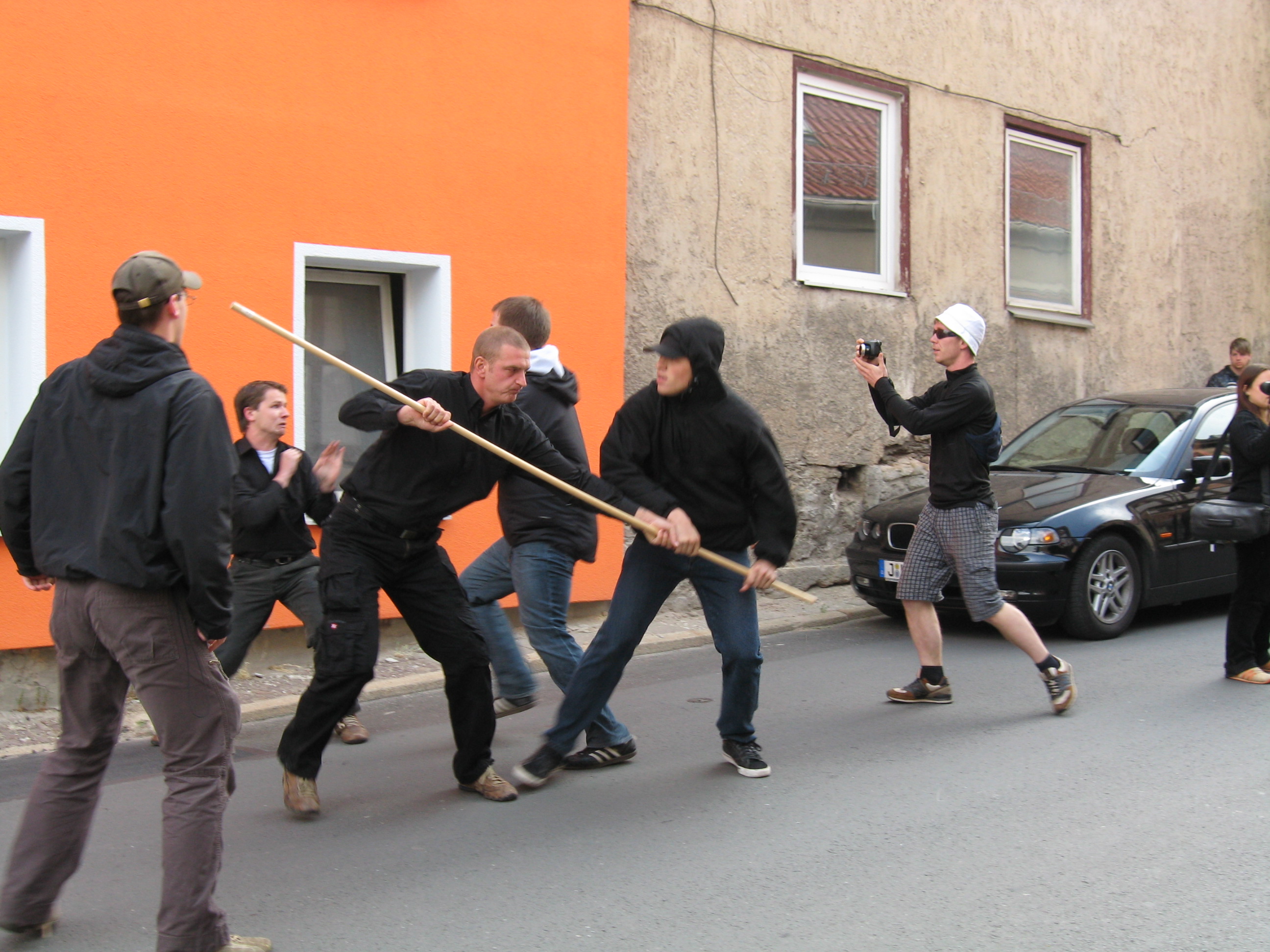 Jena 14.6.2008, Linke und Rechte bei Auseinandersetzung mit Holzlatte