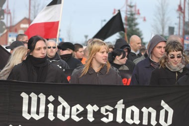 Foto: Junge Frauen auf einer rechtsextremen Demonstration im niedersächsischen Celle.