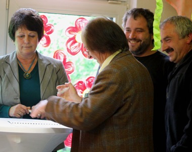 Foto: Oberbürgermeisterin Gerti Töpfer, Reinhard Glatzel von der Outlaw gGmbH Sachsen, Träger der „Kaufhalle e.V.“ bei der Unterzeichnung, Kulturbüro Sachsen e.V., c